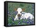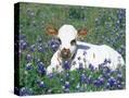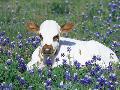 Domestic Texas Longhorn Calf, in Lupin Meadow, Texas, USA