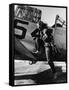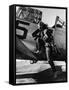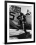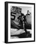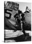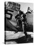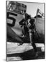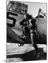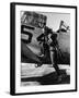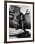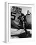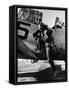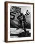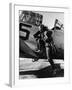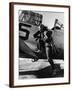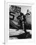 Female Pilot of the Us Women's Air Force Service Posed with Her Leg Up on the Wing of an Airplane