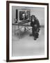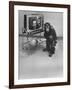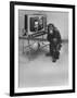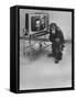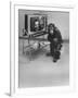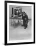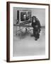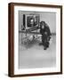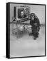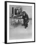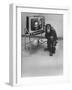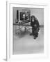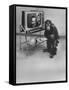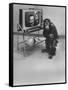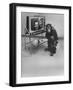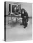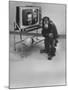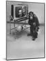 Puzzled Orangutan Standing Next to TV Set Playing the Image of President Richard Nixon