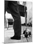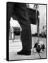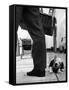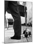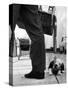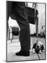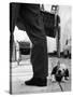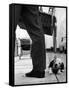 Sheepdog Puppy Stealing a String of Sausages Which are Hanging Down from a Wicker Shopping Basket
