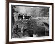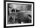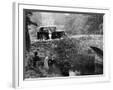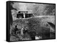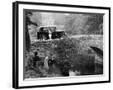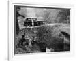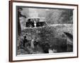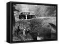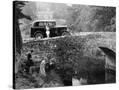 1930 Triumph Super 7 on a Stone Bridge in Rural England, 1930's