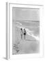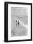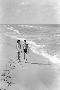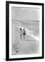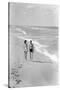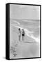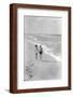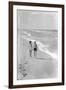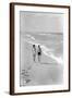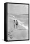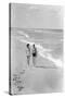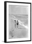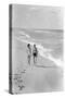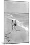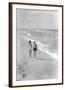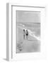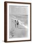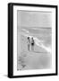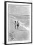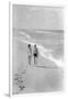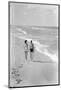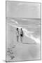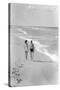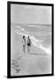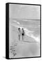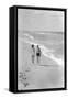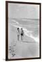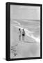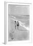 1930s 1940s COUPLE WEARING BATHING SUITS WALKING TALKING TOGETHER ON BRIGHT WARM SUNLIT SEASHORE... Photo Print