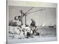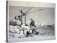 19th-Century Engraving of Egyptian Men Using a Shadoof Giclee Wall Art
