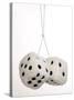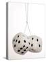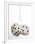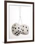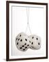 2 oversized White fuzzy dice on white background Photo Print