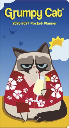 Grumpy Cat thinks her pocket planner is horrible, along with everything else in her life. The internet sensation had fun once; it was awful. Buy her 2026–2027 Grumpy Cat Pocket Planner and then go away! Two-year pocket planners feature monthly calendar spreads for August 2025 to December 2027. Each page highlights federal holidays and moon phases, with daily blocks for jotting down tasks and appointments. Extra notes pages are included to help you stay organized. Compact, portable, travel-size planner is the perfect size for your purse, pocket or backpack. Includes a durable, eco-friendly, plastic-free cover.
