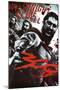 Designed with bold intensity, this officially licensed 300 movie poster showcases King Leonidas of Sparta, played by Gerard Butler, in the heat of battle. The artwork features the iconic line Tonight We Dine in Hell, a defining moment from the film that reflects the fearless resolve of the Spartan warriors. Set against a stormy, battleworn backdrop, Leonidas stands at the center in his red cape and bronze helmet, surrounded by fellow soldiers with weapons drawn & shields raised. The color palette leans into deep earth tonesrich reds, bronze, and shadowed graysgiving the poster a gritty, cinematic texture. The dramatic lighting and composition mirror the graphic novelinspired style of Zack Snyders film, emphasizing motion and confrontation. This piece fits well as wall art in home theaters or personal collections of fans who appreciate epic historical action. Ideal for admirers of 300 or action cinema, this poster blends dynamic artwork with one of the films most quoted lines.