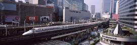 300 Series Shinkansen Train Leaving Railroad Station, Tokyo Prefecture, Kanto Region, Honshu, Japan