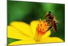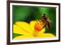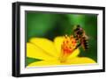 A Bee Busy Drinking Nectar From The Flower Photo Print