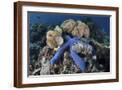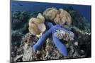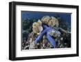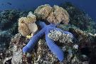 A Blue Starfish Clings to a Coral Reef in Indonesia