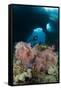 A Diver Approaches a Gorgonian Sea Fan, Indonesia
