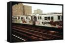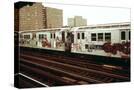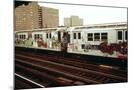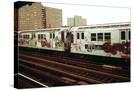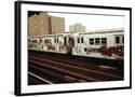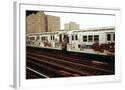 A Graffiti Painted Subway Train with Housing Projects in the Background, May 1973 Photo Print