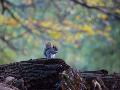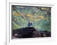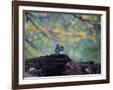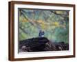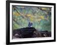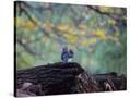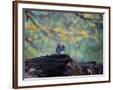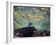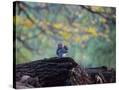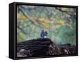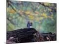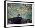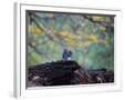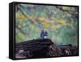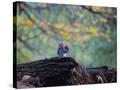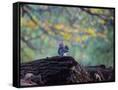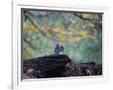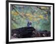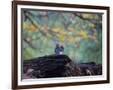 A Gray Squirrel, Sciurus Carolinensis, Sits on a Log Eating Nuts in Autumn Photo Print