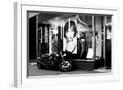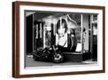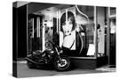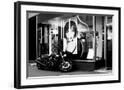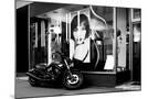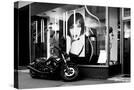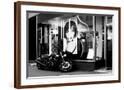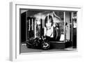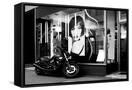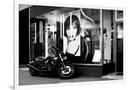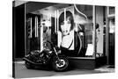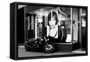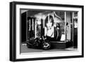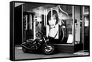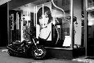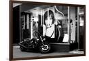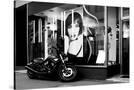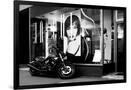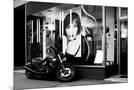 A Harley Davidson Is Based on a Window of a Hairdresser Photo Print