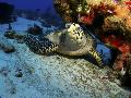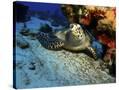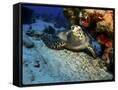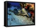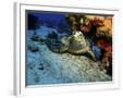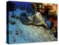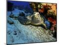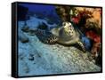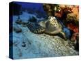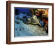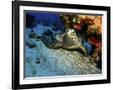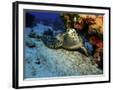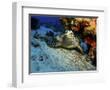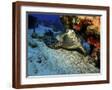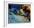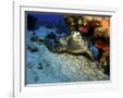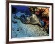 A Hawksbill Sea Turtle Resting under a Reef in Cozumel, Mexico Photo Print
