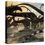 A Herd of Argentinosaurus Marching Along the Side of a Beach Wall Art Print