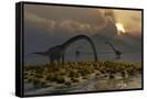 A Herd of Omeisaurus Sauropod Dinosaurs Grazing