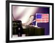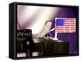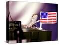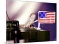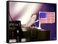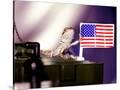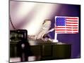 A Juvenile Bearded Dragon Places a Claw Upon an United States Flag
