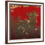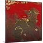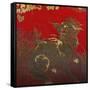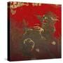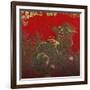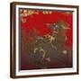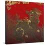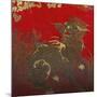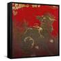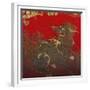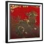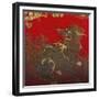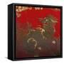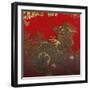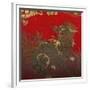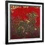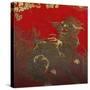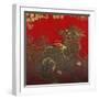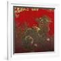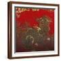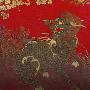 A Large Chinese Red Lacquered Wood Rectangular Panel Depicting a Seated Kylin with Head Turned to… Giclee Wall Art