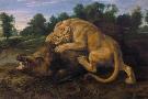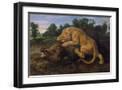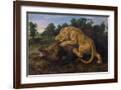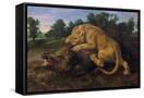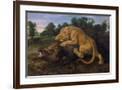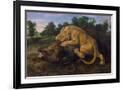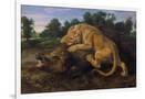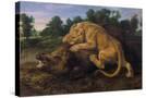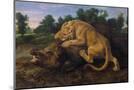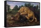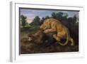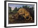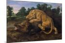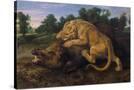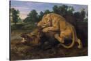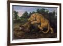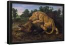 A Lioness Attacking a Wild Boar Giclee Wall Art