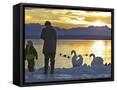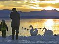 A Mother and Child Feed Water Fowl on the Ice Covered Shores of Lake Chiemsee