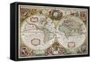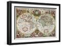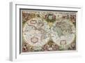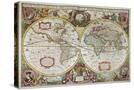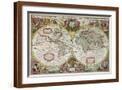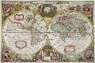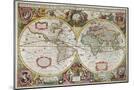 A New Land and Water Map of the Entire Earth coloured engraving Hondius Henricus Private Collection The Bridgeman Art Library