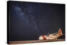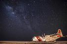 A U.S. Coast Guard C-130 Hercules Parked on the Tarmac on a Starry Night