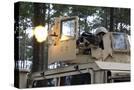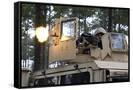 A U.S. Marine Fires a M-240B Machine Gun Atop a Humvee