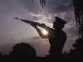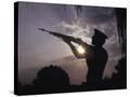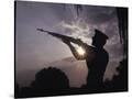 A U.S. Marine Honor Guard Rifleman Performs a Gun Salute During Sunset