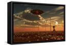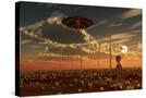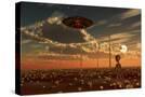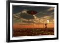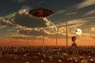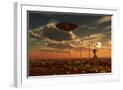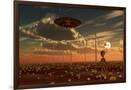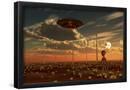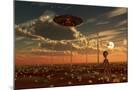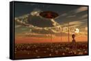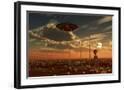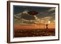 A Ufo and Alien on a Desert Wind Farm Wall Art Print