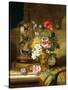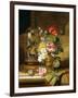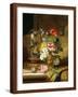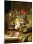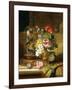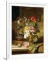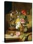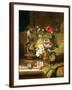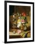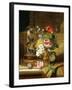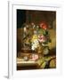 A Vase of Assorted Flowers and Songbirds on a Ledge, 1867 Giclee Wall Art