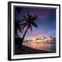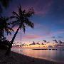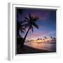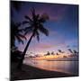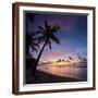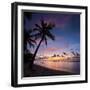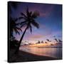 A View of a Beach with Palm Trees and Swing at Sunset, Kuredu Island, Maldives, Lhaviyani Atoll