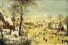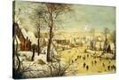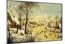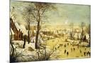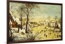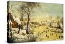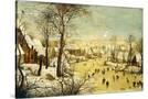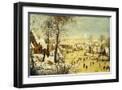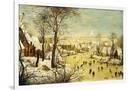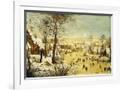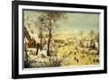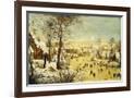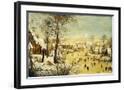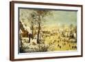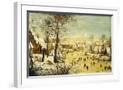 A Village in Winter with a Birdtrap and Skaters on a Frozen Waterway Giclee Wall Art