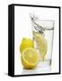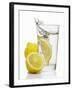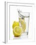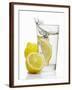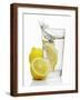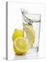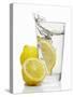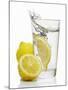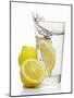 A Wedge of Lemon Falling into a Glass of Water Photo Print