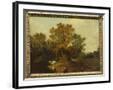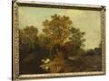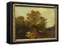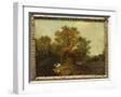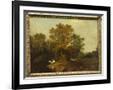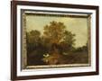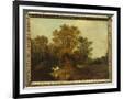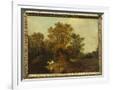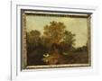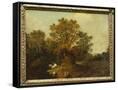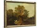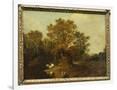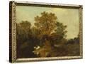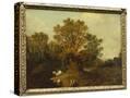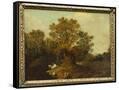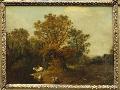 A Wooded Landscape with Faggot Gatherers by a Path, a White Horse Tethered Beyond