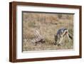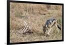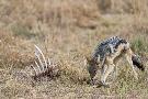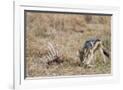 A black-backed jackal (Canis mesomelas) feeding on a carcass, Botswana, Africa