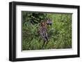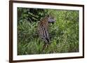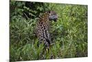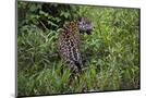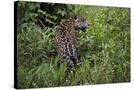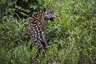 A jaguar (Panthera onca) moving through the grass, Cuiaba River, Pantanal, Mato Grosso, Brazil, Sou