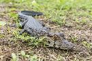 A juvenile captive black caiman (Caiman niger), San Francisco Village, Loreto, Peru, South America