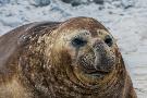 A southern elephant seal, Mirounga leonina, portrait. Sea Lion Island, Falkland Islands