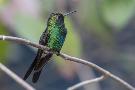 A wild adult Cuban emerald hummingbird (Chlorostilbon ricordii), Zapata National Park, Cuba, West I