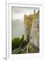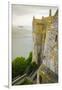 Abbey walls and bay, Mont Saint-Michel monastery, Normandy, France