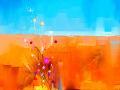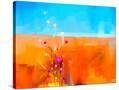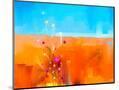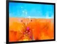 Abstract Colorful Oil Painting Landscape on Canvas. Semi- Abstract Image of Flowers in Meadows ( Fi Wall Art Print