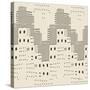 Abstract Ornate Irregular Square and Dot Textured Background. Cityscape Motif. Seamless Pattern. Ve Wall Art Print