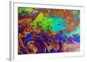 Abstract pattern in oil spilled in small stream, Costa Rica Photo Print