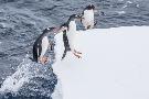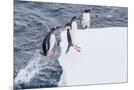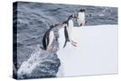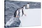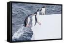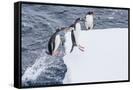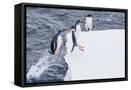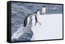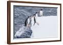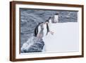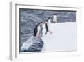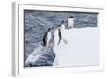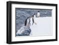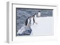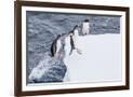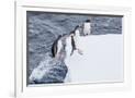 Adult Gentoo Penguins (Pygoscelis Papua) Leaping onto Ice in the Enterprise Islands Photo Print