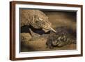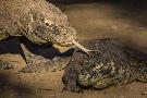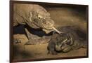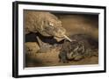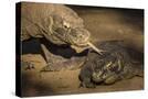 Adult Komodo dragon smelling another dragon with its tongue on Rinca Island, Flores Sea, Indonesia
