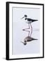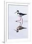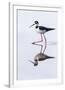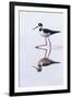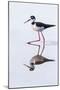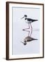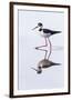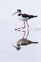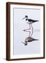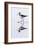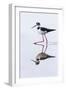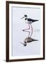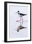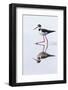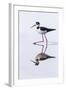 Adult black-necked stilt (Himantopus mexicanus) wading and feeding in a brackish water lagoon