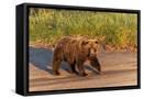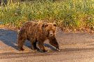 Adult grizzly bear on shoreline at sunrise, Lake Clark National Park and Preserve, Alaska.