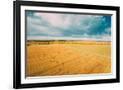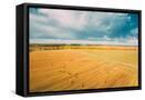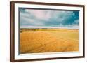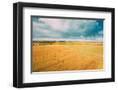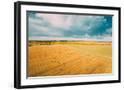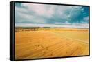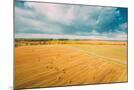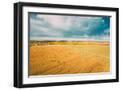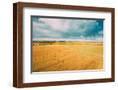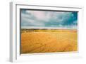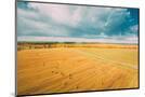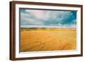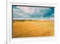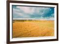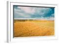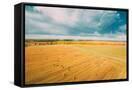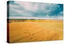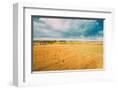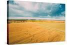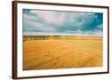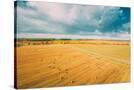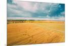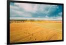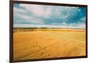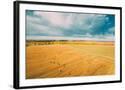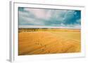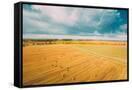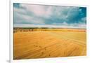 Aerial View Of Autumn Hay Rolls Straw Field Landscape. Haystacks, Hay Rolls. Harvest Season Photo Print