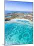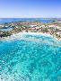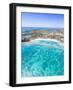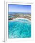 Aerial panoramic of white sand beach and coral reef, Long Bay,