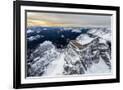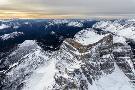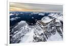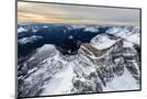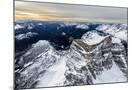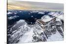 Aerial view of the rocky peaks of Monte Pelmo at dawn, Zoldo, Dolomites, Province of Belluno, Venet